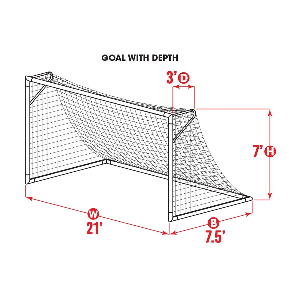 Bring new life to your soccer goals with the junior-sized,, 7′ x 21′ x 3′ x 7.5′ net from Kwik Goal. The net’s high tenacity polypropylene (HTPP) material is treated to resist UV rays better than standard polyethylene. Offered in white color only, thisΒ This net net features a 120mm mesh and a 3mm solid braid, knotless rope.