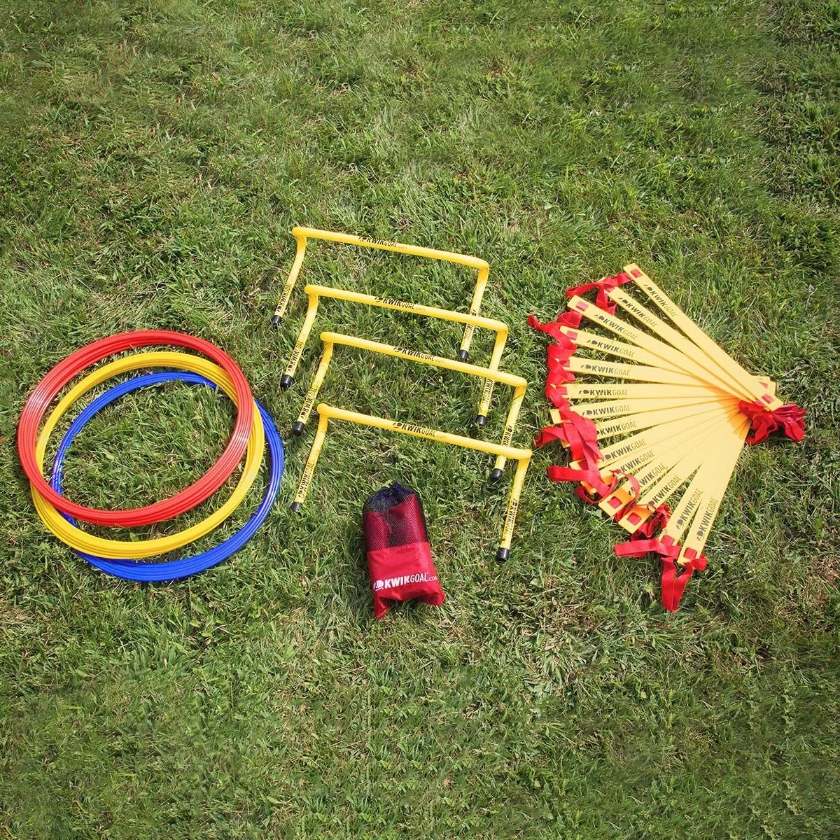 Increase speed, strength, and agility with the Kwik Goal Player Speed kit that includes: agility ladder, 12 speed rings, 4 speed hurdles, and a resistance chute. This economical kit includes a ladder, speed rings, speed hurdles and a resistance chute.