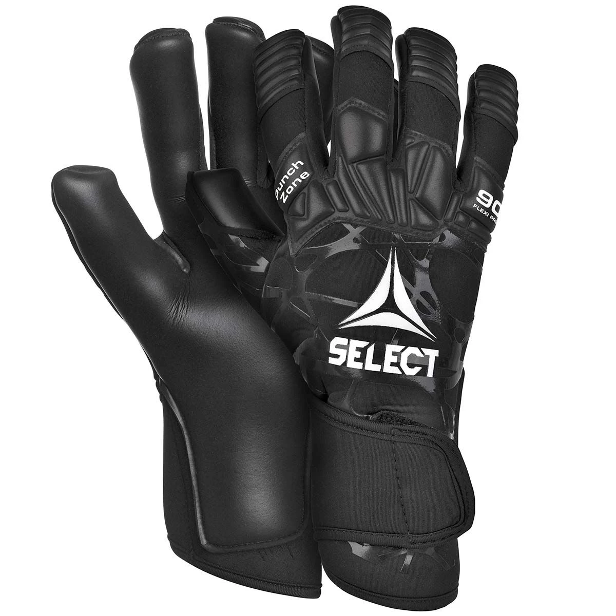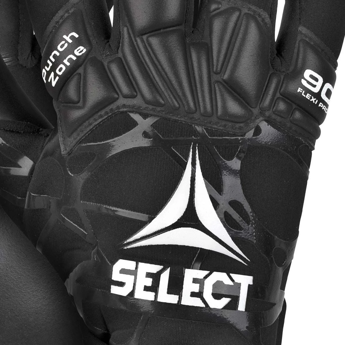 The 90 Flexi Pro V22 goalkeeper gloves from Select are an excellent option for elite goalkeepers. Featuring 3 mm Nova Grip latex, these gloves provide perfect grip in all kinds of weather. The rubber lines along the fingers offer extra stability and impact protection from the hardest shots, while the Punch Zone adds additional comfort as well as increased power and precision. Mesh on the inside of the fingers ensures excellent air circulation to keep you cool during hot days. The Anatomical Fit System provides a correct fit every time, designed according to your handsโ natural grip position. An injection molded spiderweb design makes for a lightweight feeling and adds flexibility when you need it most. The extended grip zone goes all the way to the back of the wrist for additional protection and comfort.