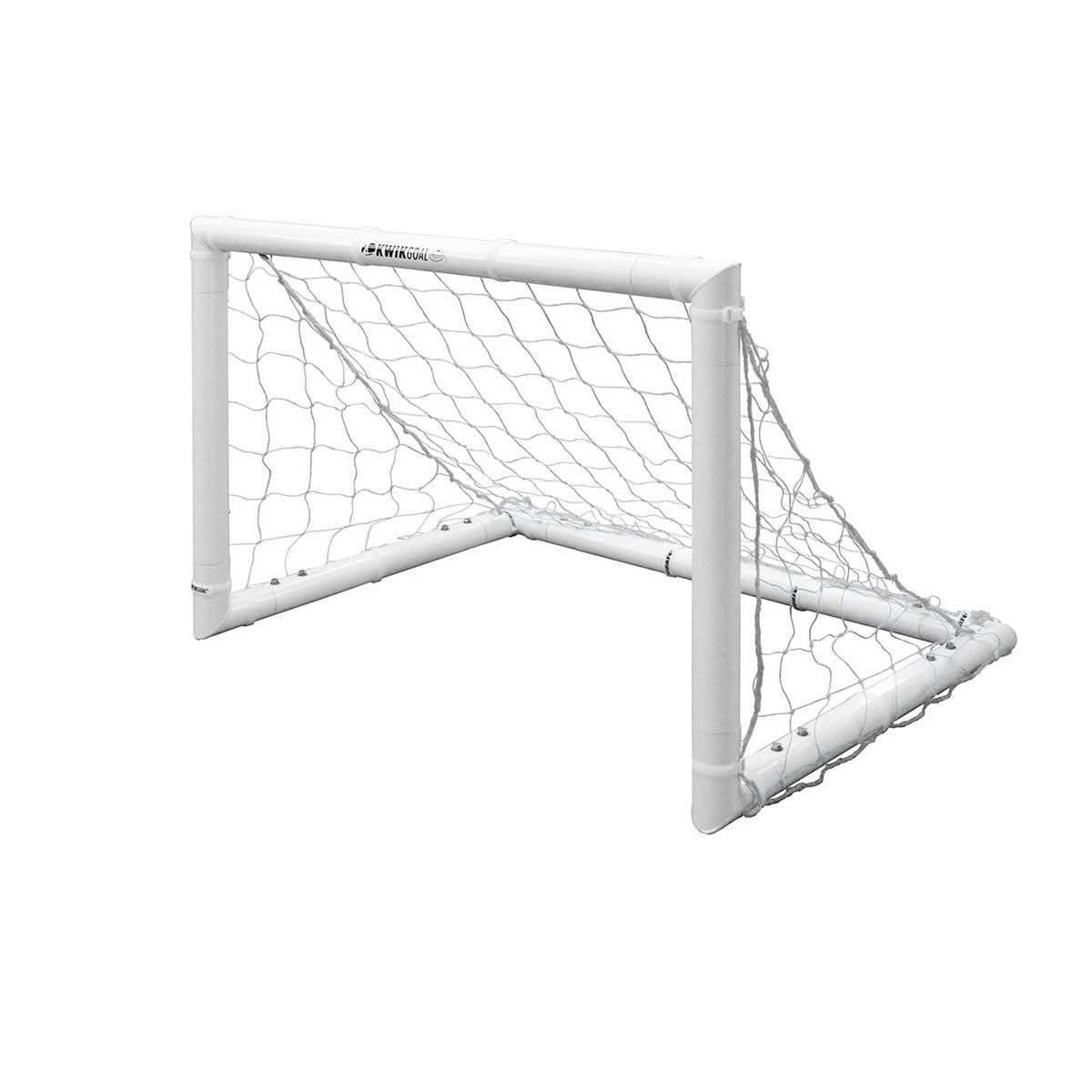 The Kwik Goal Academy 2B5001 portable soccer goal is the perfect choice for a team or league that wants an “official” look without the expense. The Academy goal features a sturdy 3″ round aluminum construction supported by fully welded corner fittings and a beautiful powder coated paint finish. Lightweight and portable, this goal can be moved easily around your field. The 2B5001 Academy goal includes a 2.4mm, 120mm mesh, white net, 4 portable “J” anchor pegs and net attachment straps. The Academy goal is backed by Kwik Goal’s lifetime guarantee.