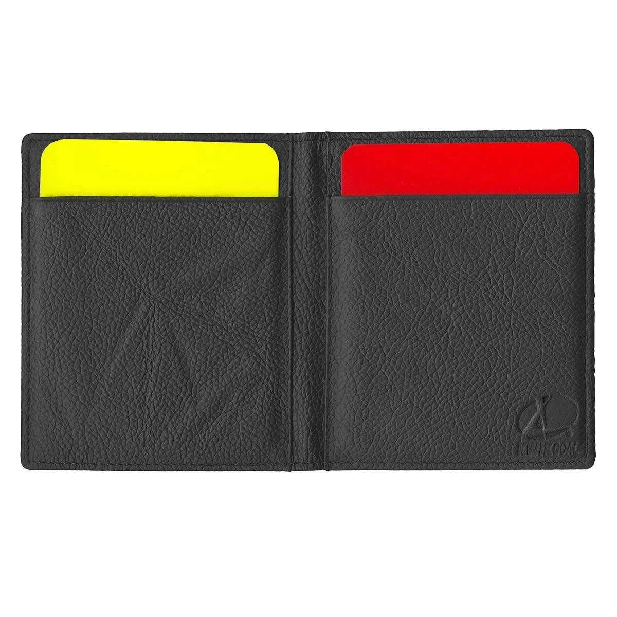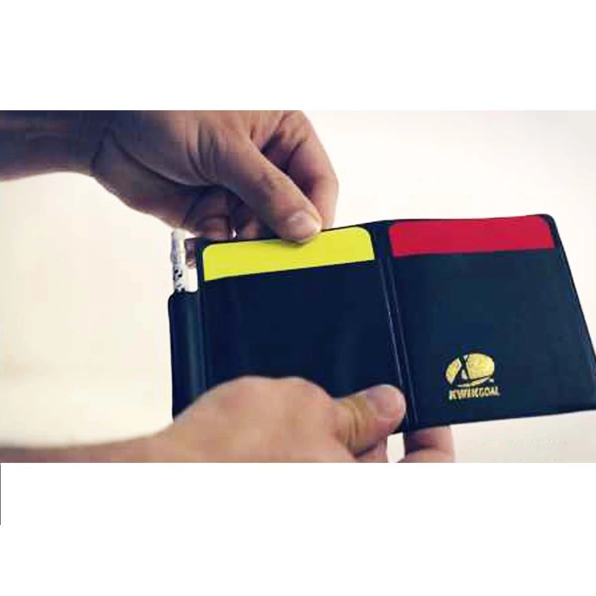 What’s in your referee wallet? The Kwik Goal referee wallet includes a vinyl carrying case, red and yellow cards, a pencil, and a set of score sheets to keep track of the score, fouls, and cards issued. This soccer ref wallet is designed by referees for referees to help meet all needs on the field. The 15B501 wallet is constructed of durable vinyl that holds up in all weather conditions.