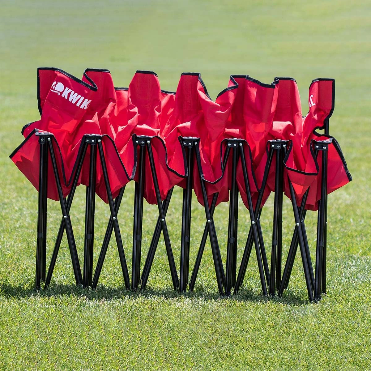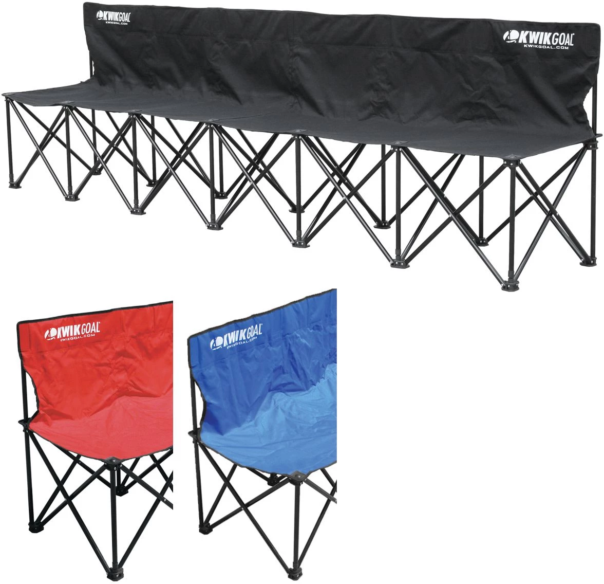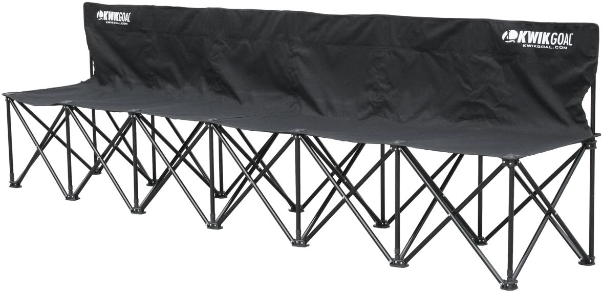 Kwik Goal’s folding soccer bench design includes a seat back for superior comport and seats up to six kids or adults.Β The Kwik Bench sets up and collapses effortlessly making it the perfect seat for teams and spectators. A carry bag is included making it easy to transport from the car to the field.Β Includes Kwik Goal’s exclusive lifetime warranty.