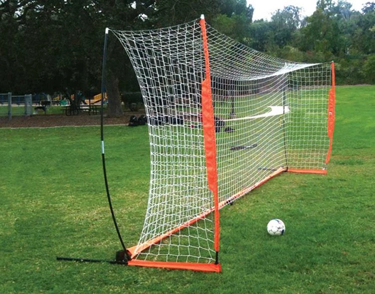 The BOWNET 7′ x 21′ pop-up soccer goal is ideal for indoor orΒ outdoors asΒ the goal has non-marking rubber feet. Set up a soccer game wherever you might need it with this portable goal, featuring a nylon net, ground stakes, a ground frame, stability legs, poles and a roller bag. BOWNET‘s 7′ x 21’ goal is the USYS recommended goal size for youth soccer.The essence of BOWNET’s product design is the “bow” in the poles. This unique design offers a flexible, lightweight, and portable system that is durable enough for the pros. BOWNET has revolutionized the sports netting business with it’s Energy Absorption System (EAS). BOWNET goals release the energy of the shot three times, saving the life of the net while making the goal stable and durable. You can’t knock it over!
