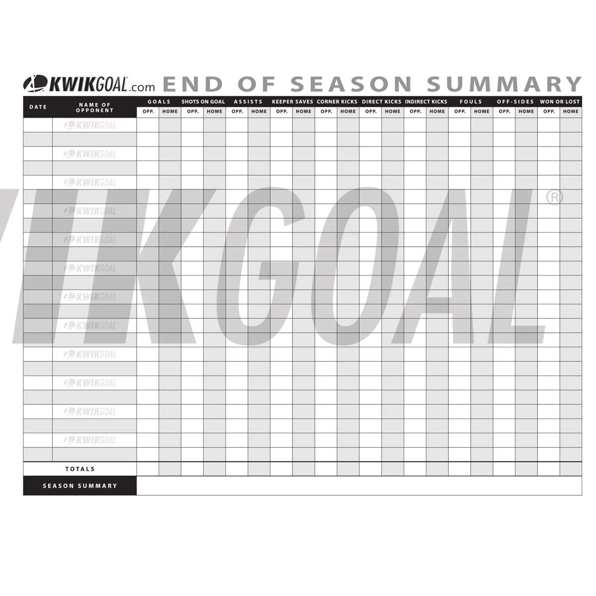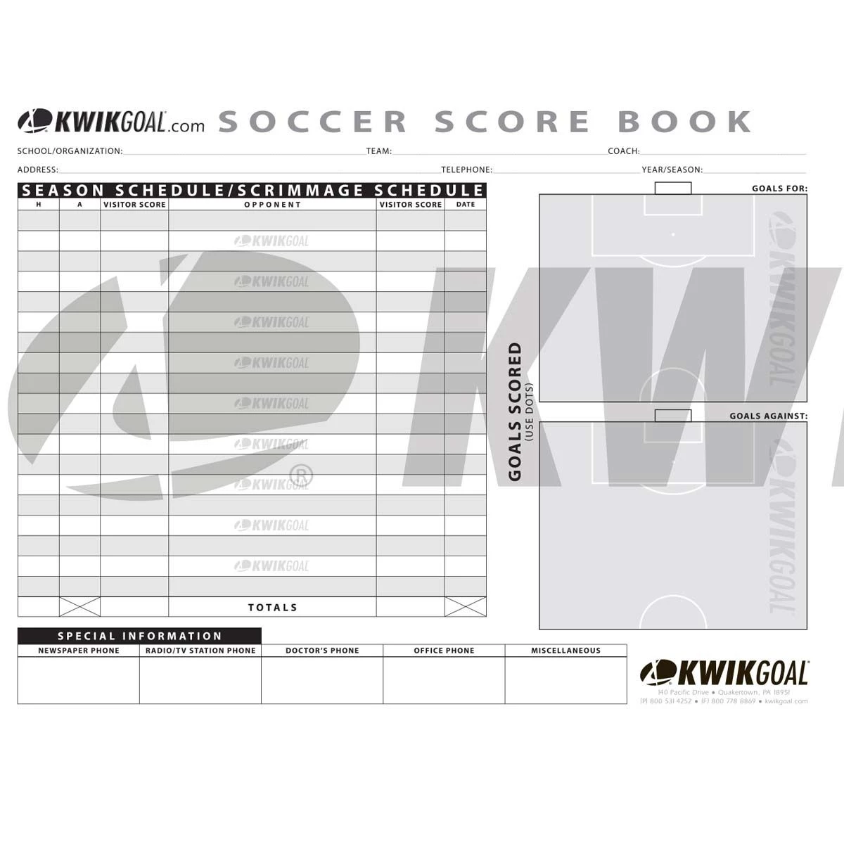 The Kwik Goal Soccer Scorebook keeps the score and player statistics for 24 matches