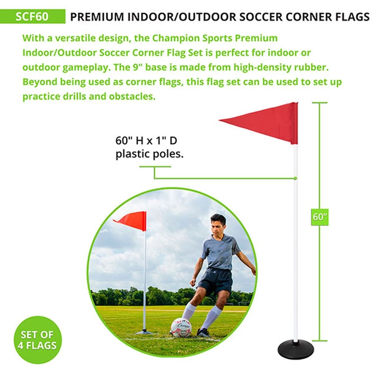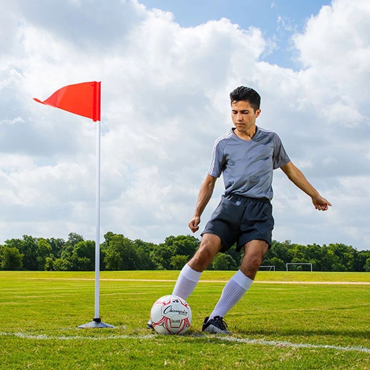 This set of 4 premium turf corner flags is an economical choice that can be used indoors or outdoors and on any playing surface. Each upright sits in a 9″ diameter, high-density rubber base that is weighted for stability.