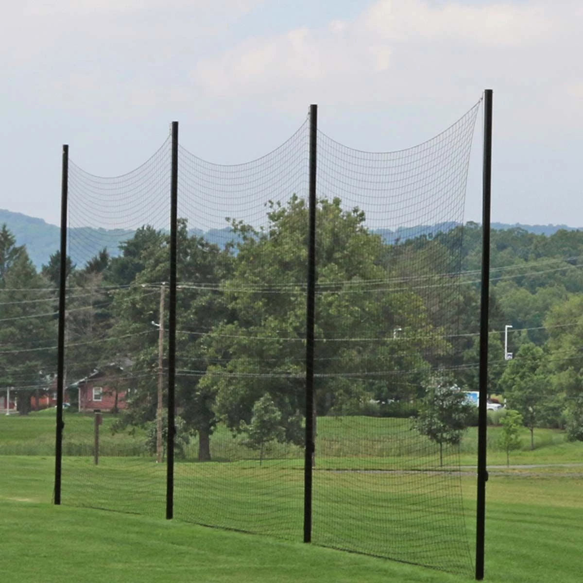 The Kwik Goal multi-sportΒ backstop net system has a smaller 1-3/4″ mesh that will stop smaller sport balls like lacrosse and field hockey in addition to soccer balls. A hoist system makes it easy to put up and take down the net. As a backstop the suggested distance behind the goalΒ is 25′ and you can also line them up end-to-end to create barrier netting in between fields. The entire Kwik Goal system is approved for up to 80 mph winds and can be installed either permanently or semi-permanently with the ground sleeves.