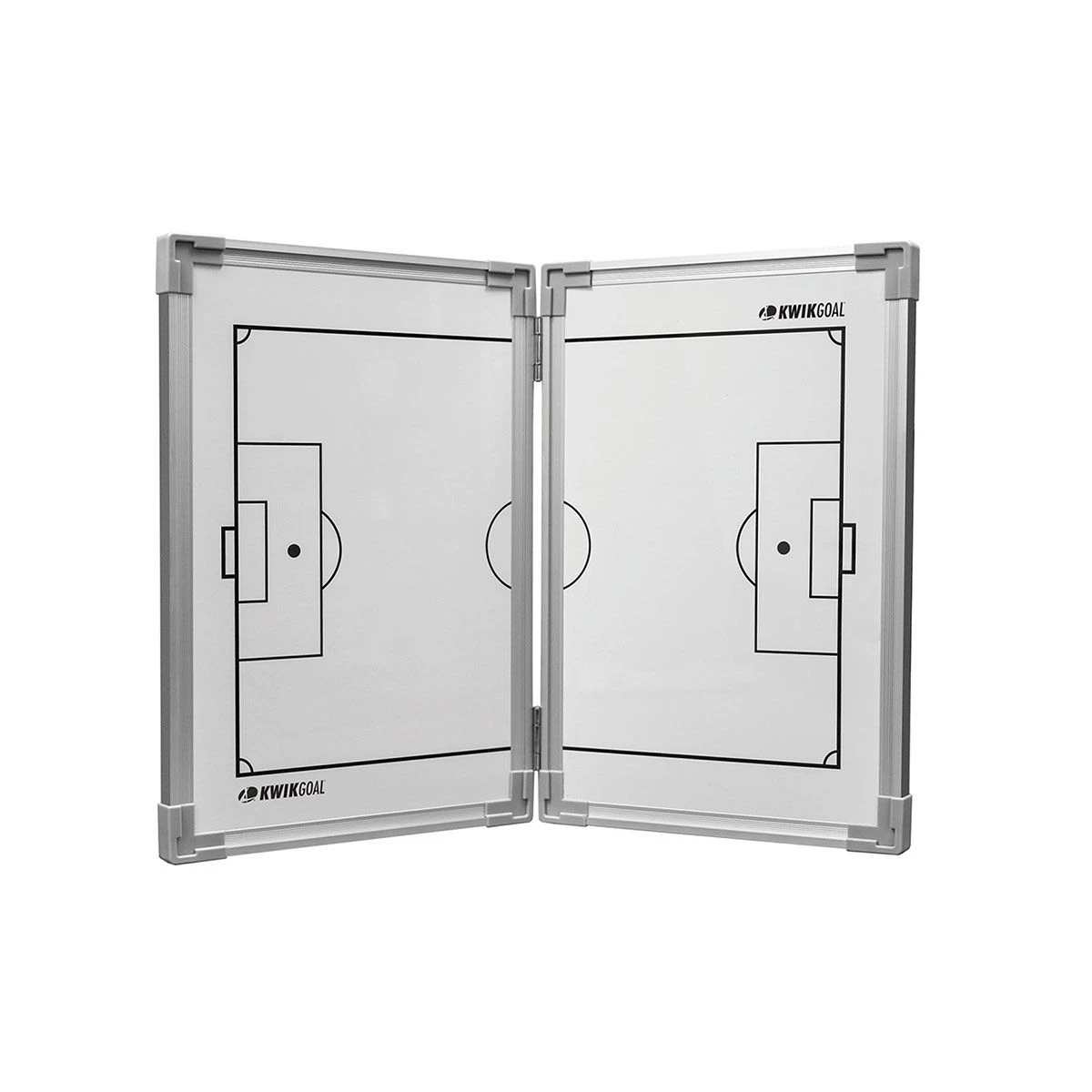 Kwik Goal’s folding magnetic soccer coaching board comes in two sizes and is the perfect board to deliver game plans and tactics, offering multiple surfaces and contains several field layouts. The coaching board can be folded in half for an in zone focus and comes equipped with an eraser, two markers, a carry bag, and 27 magnets.
