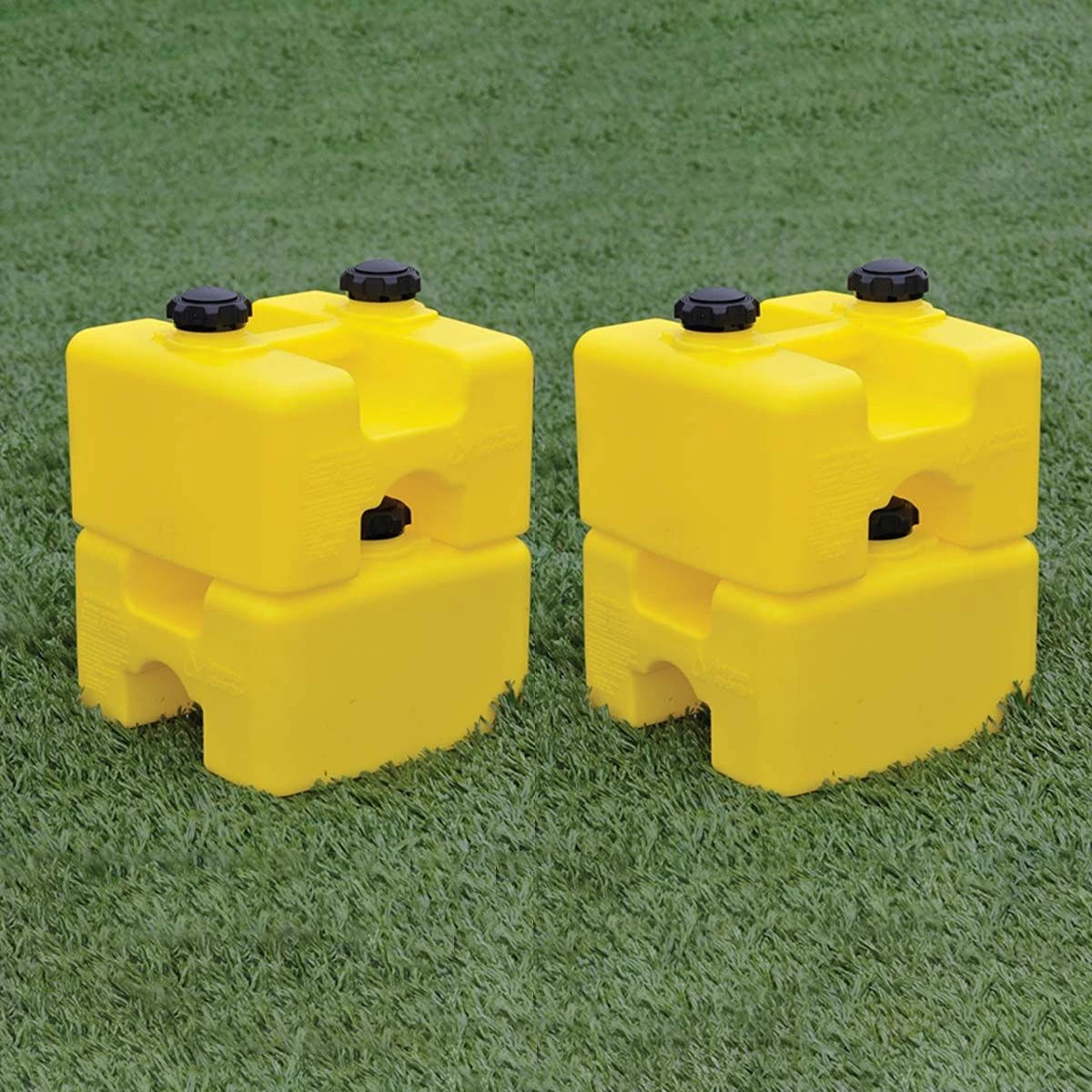 The Jaypro SGA-50 World Cup soccer goal anchors are ideal where in-ground anchoring devices are not appropriate. The hard plastic shell will not crack and will last for years. Fill in the field with 50 lbs of concrete, 30 lbs of sand, or 24 lbs of water for maximum couterweight. The anchor also has a built-in carry handle and stackable design for convenient transportation and storage.Β Refer to your goal’s ASTM counterweight requirements to ensure proper anchoring.