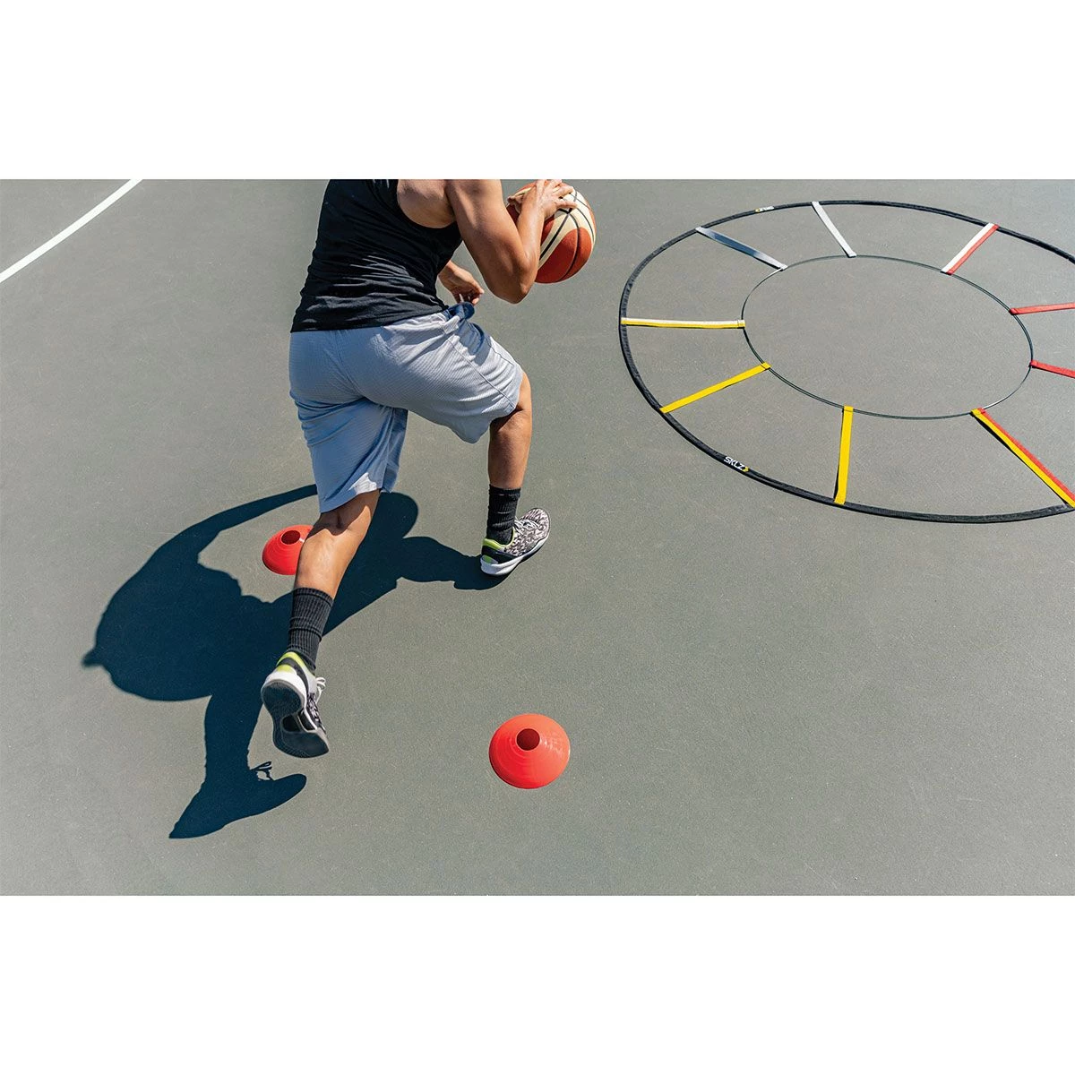 The SKLZ Reactive agility ladder uses color and audible cues to engage the brain and body during training to develop athletic intelligence and improve reaction time and speed through rapid decision making. Utilize the eight colored cones for endless training sequences, including speed gates or marking drills to enhance random response and memory sequencing patterns. The circular shape helps train footwork and agility patterns in all directions for almost any sport or skill level. This training tool includes exclusive online programming and content designed by certified trainers and for even more versatile training, use the Reactive agility ladder with the Switched On training app. When you’re done training, the ladder folds down instantly and can be transported with the included carry bag.