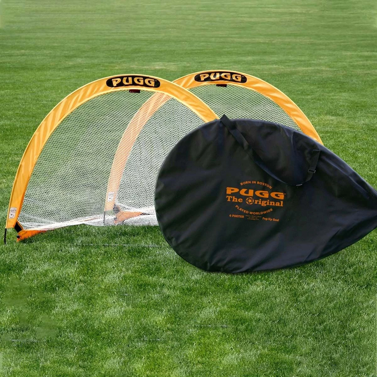 The original pop up goal! Safe for kids, durable enough for adults.This pop-up goal not only takes away the hassle of assembly, it also makes transporting and storing a breeze. Measuring 6W x 3.5D x 3.5H feet, this goal weighs justΒ 7 lbs.Β and comes with a convenient carrying bag.The 6′ portable soccer goals by Pugg are perfect for small-sided games and a variety of drills, making them a must-have coaching tool!